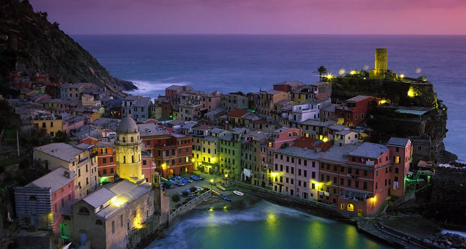 Még egy látogatásra méltó helyszín, ezúttal észak-nyugat Olaszországból. Vernazza látképe esti fényekben: