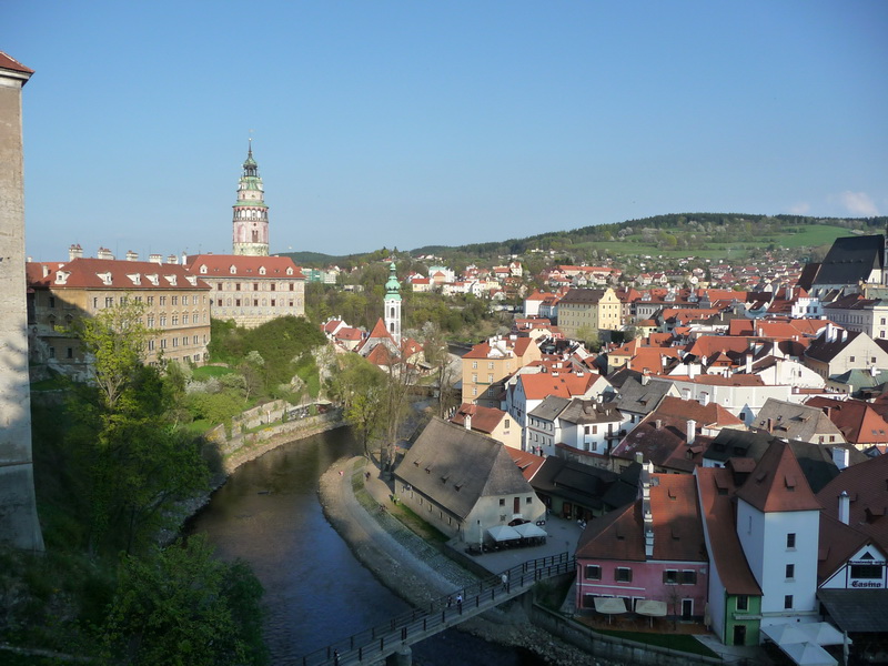 A város hegyek között fekszik, a Moldva partján. Már a környék is gyönyörű. A folyó a városban olyan hajtűkanyarokat vesz, hogy meghatározza a városrészeket. Az egész város egy az egyben történelmi műemlék. A legújabb házak benne barokk koriak, és nincs két emeletesnél magasabb épület. A házak olyanok, mintha sziklába lennének építve. Az egyik hajtűkanyar nagy védelmet nyújt az itt található, Csehországban második legnagyobb várnak. Belülről is gyönyörű épületegyüttesben két múzeum is van. A vár védelme két medvére van bízva. A városban autóval nehéz a közlekedés, mert nagyon szűkek az utcák, és szinte mindegyik egyirányú. A gyalogos közlekedés már jóval hangulatosabb. Mindenhol szűk, macskaköves utcák, hidak vannak. A főtér engem kicsit Telcsre emlékeztetett, de nagyon tetszett. A Moldvának itt rengeteg kis ága, mellékfolyója van, amik az egész várost behálózzák, rengeteg apró szigetet képezve. Mindennek ellenére Cesky Krumlov egy élő város, ahol sok turista megfordul. Nagyon sok étterem, szálloda várja a látogatókat, de valahogy eloszlik a tömeg. Az sem mellékes, hogy itt gyártják az Eggenberg sört. |