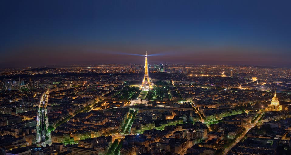 Párizs éjszakai fényekben, természetesen középpontban az Eiffel-toronnyal: